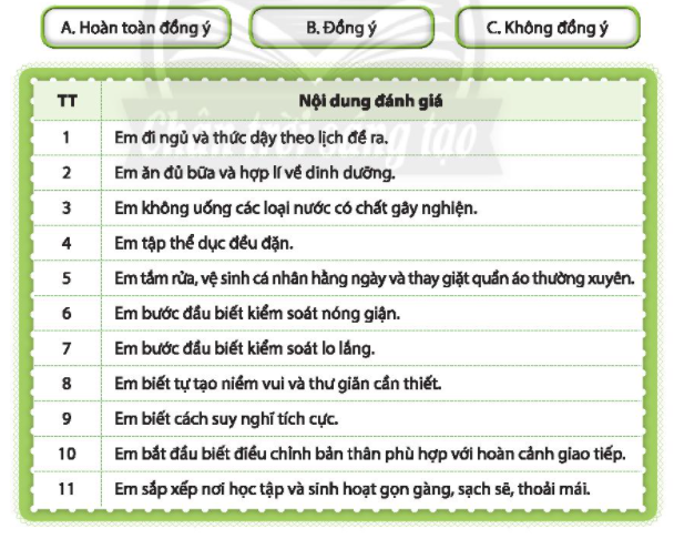Với mỗi nội dung đánh giá sau đây, hãy xác định một mức độ phù hợp nhất với em.