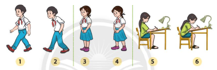 Quan sát các tư thế đi, đứng, ngồi dưới đây và xác định tư thế đúng.