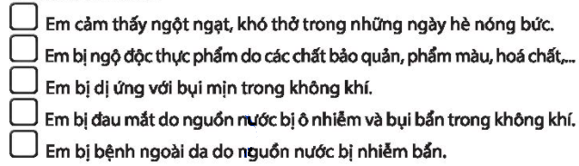 Đánh dấu X vào trước những ảnh hưởng của biến đổi khí hậu đến sức khỏe của bản thân.