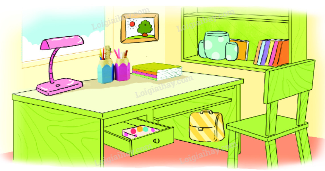 Em dán ảnh hoặc vẽ tranh về góc học tập của mình.