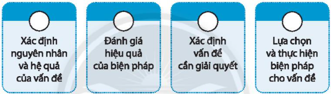 Điền số thứ tự các bước tự giải quyết vấn đề vào hình tròn tương ứng ở mỗi ô sau đây: