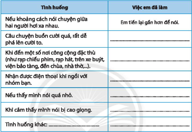 Với những tình huống em có thể gặp khi tham gia các hoạt động nơi công cộng em đã làm gì để thực hiện nói cười đủ nghe.