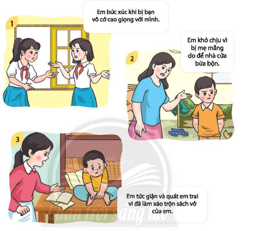 - Tình huống 3: Em hít thở sâu và nói nhỏ nhẹ với em trai rằng lần sau không được xáo trộn sách vở của em nữa.