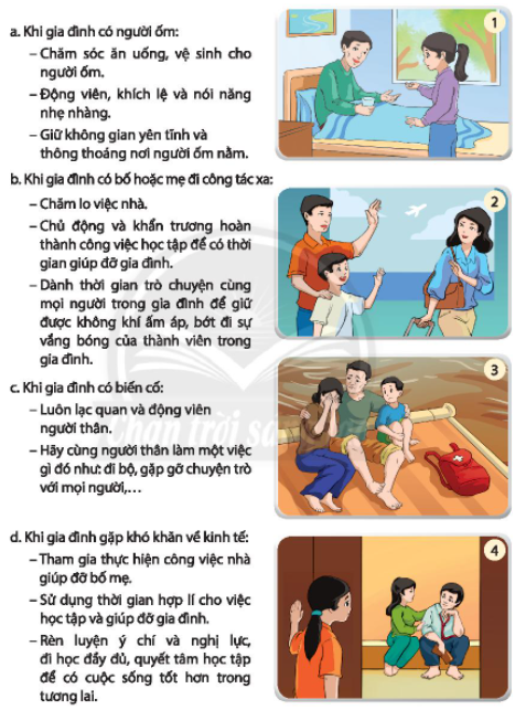 Thực hiện chia sẻ khó khăn cùng bố mẹ, người thân khi gia đình gặp phải một số tình huống sau: