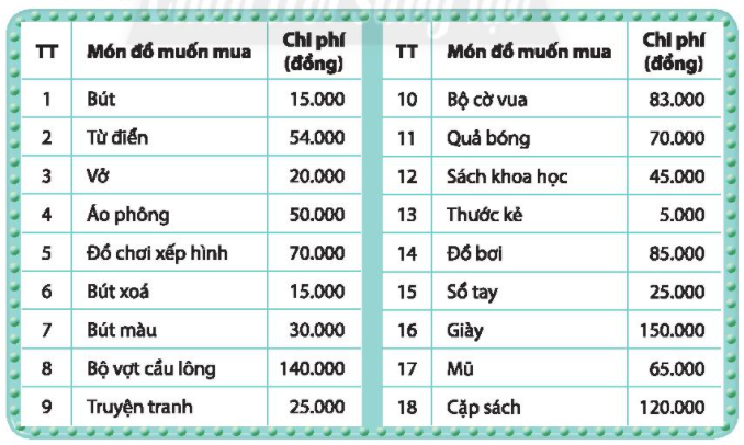 - Chuẩn bị nghỉ hè em sẽ mua: Bộ vợt cầu lông, truyện tranh.