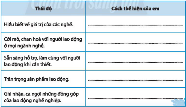 Chia sẻ những việc em đã làm để thể hiện thái độ tôn trọng người lao động.