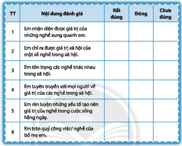 Em nhận diện được giá trị của những nghề xung quanh em. |