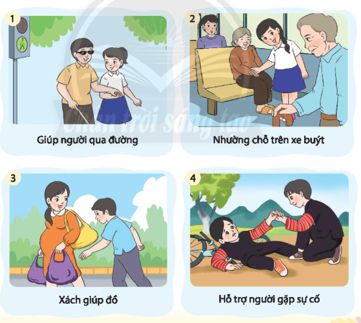 Giúp đỡ mọi người nơi công cộng bằng những việc làm cụ thể sau. Chia sẻ cảm xúc của em khi giúp đỡ mọi người ở nơi công cộng