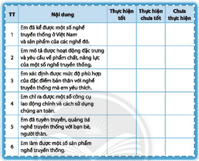 Em xác định được mức độ phù hợp của đặc điểm bản thân với nghề truyền thống mà em yêu thích. |