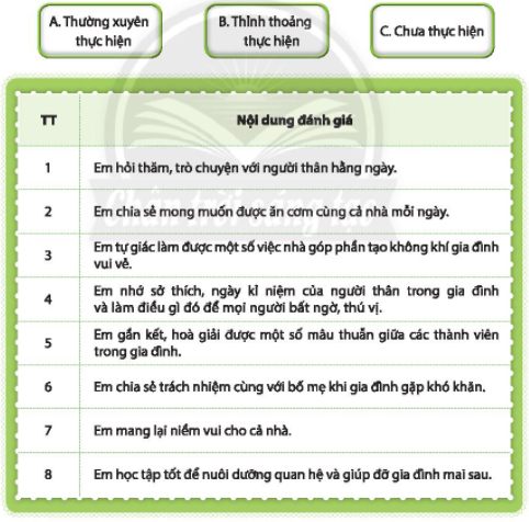 Em tự liên hệ bản thân để hoàn thành bài tập.