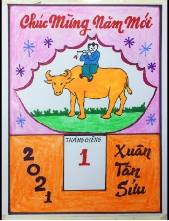 Em thiết kế tờ lịch lấy ý tưởng từ tranh Mục đồng thổi sáo: