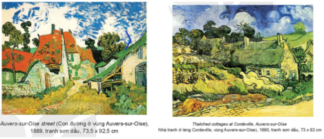 - Ngôi nhà trong 2 bức tranh trên có kiểu dáng như những ngôi nhà ta thường thấy: mái nhà với ống khói nhô lên, có 1 điểm khác biệt là trong bức tranh “Con đường ở vùng Oise”, ngôi nhà có mái màu cam và tường nhà được làm bằng đá