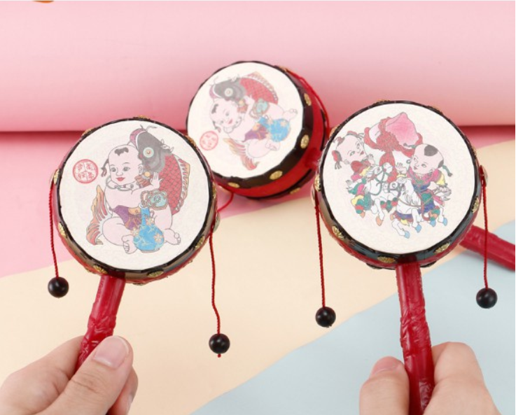 Em sử dụng tranh Đông Hồ để trang trí trống lắc: