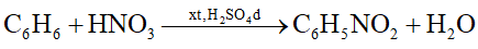 Nitro hóa benzene bằng hỗn hợp HNO3 đặc và H2SO4 đặc ở nhiệt độ \( \le \)500C, tạo thành chất hữu cơ X.