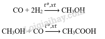 Giả sử hiệu suất của các phản ứng (1) và (2) đều đạt 90%. Để sản xuất 1000 lít acetic acid (D = 1,05 g.mL-1), cần thể tích khí CO và H2 (ở điều kiện chuẩn) lần lượt là