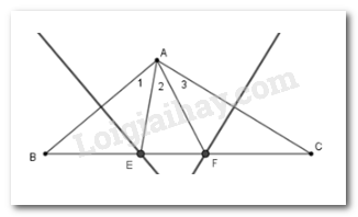 Cho tam giác \(ABC\) trong đó \(\widehat A = 100^\circ \). Các đường trung trực của \(AB\) và \(AC\) cắt cạnh \(BC\) theo thứ tự ở \(E\) và \(F\) . Tính \(\widehat {EAF}.\)