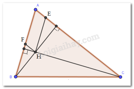 - Sử dụng quan hệ đường xiên – đường vuông góc để chứng minh \(BF > BH\),\(CE > CH\).