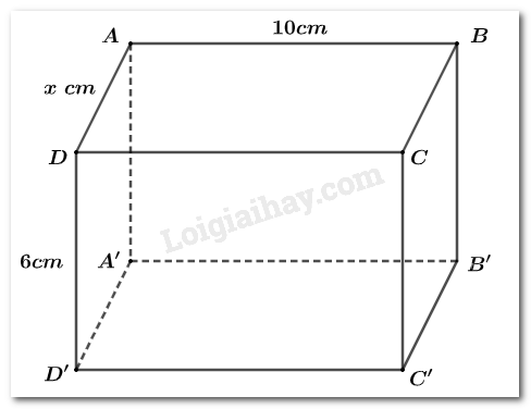 Một hình lăng trụ đứng có đáy là hình chữ nhật có diện tích xung quanh bằng tổng diện tích hai đáy, chiều cao bằng \(6cm\). Một kích thước của đáy bằng \(10cm\), tính kích thước còn lại.