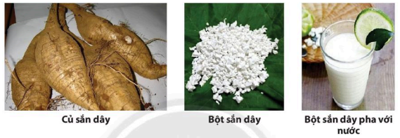 tinh bột sắn dây, tạp chất, bã sắn dây.