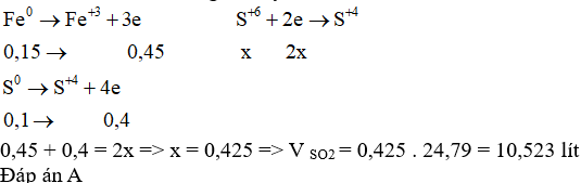 n Fe = 8,4 : 56 = 0,15 mol; n S = 3,2 : 32 = 0,1 mol