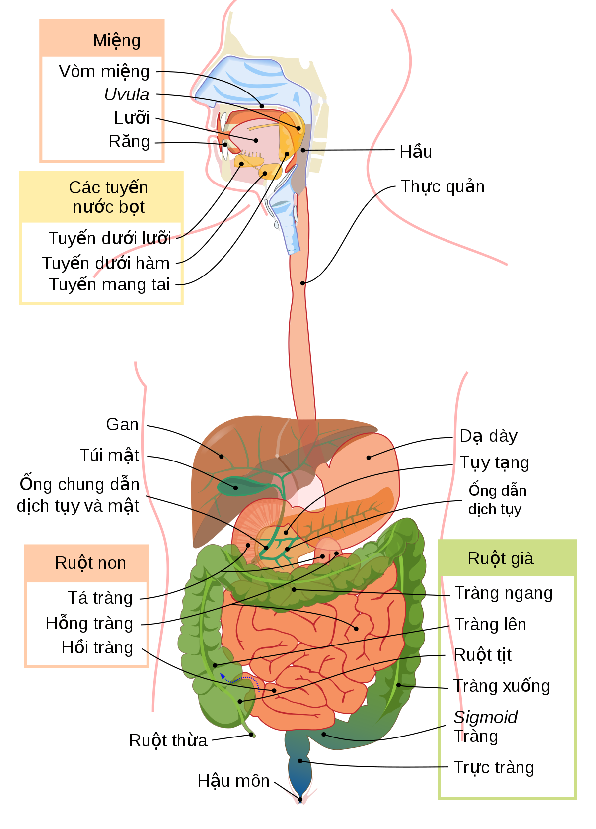 Tuyến tiêu hóa gồm tuyến nước bọt, tuyến tiêu hóa tụy, gan, mật.
