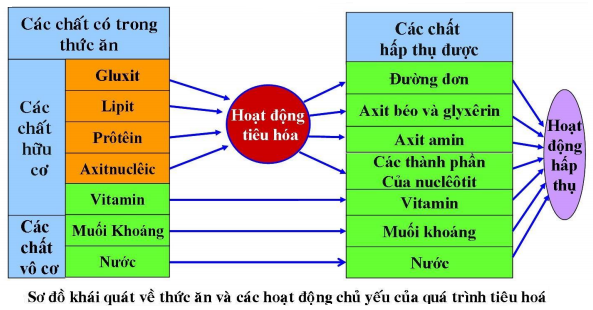 Tiêu hóa là quá trình biến đổi các chất dinh dưỡng có trong thức ăn thành những chất đơn giản mà cơ thể hấp thụ được.