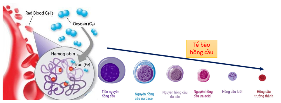 Hồng cầu vận chuyển oxi từ phổi về tim tới các tế bào, vận chuyển CO2 từ các tế bào về tim đến phổi.