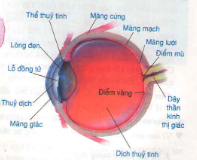 các tế bào thụ cảm thị giác ở màng cứng, dây thần kinh thị giác và vùng thị giác ở thùy trán.