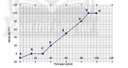 Quan sát đồ thị, ta thấy ở điểm G, nhiệt độ của nước là 100°C => Nước bắt đầu sôi.