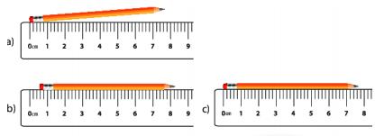 Cách đặt thước để đo chiều dài bút chì ở hình c là đúng: Đặt thước đo dọc theo chiều dài của bút, vạch số 0 của thước trùng với một đầu của bút.