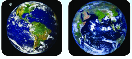 Hình vẽ là ảnh chụp Trái Đất từ vệ tinh nhân tạo. Mỗi ảnh chỉ ghi được các vùng lãnh thổ của một nửa phần Trái Đất. Hai ảnh này được chụp cách nhau ít nhất là bao nhiêu giờ?
