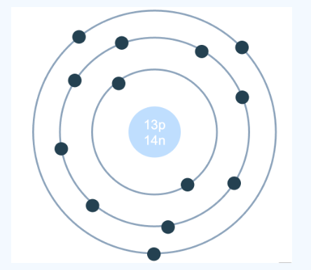 Nguyên tử aluminium gồm hạt nhân có 13 proton, 14 neutron, và vỏ nguyên tử có 13 electron.