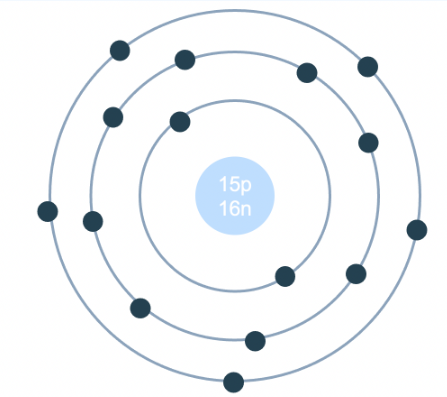 Nguyên tử phosphorus có 15 electron, lớp thứ nhất có 2 electron, lớp thứ hai có 8 electron, lớp thứ ba có 5 electron