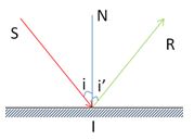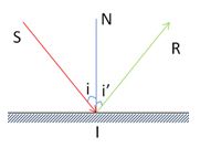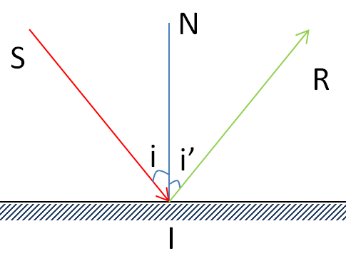 Góc phản xạ \(i'\) là góc tạo bởi tia phản xạ và pháp tuyến tại điểm tới
