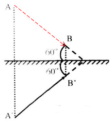 Do tính đối xứng của ảnh – vật qua gương nên góc tạo bởi ảnh và mặt gương cũng bằng \({60^0}\)