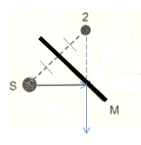 Lấy đối xứng các điểm của ảnh qua gương, ta suy ra vị trí của kim như hình