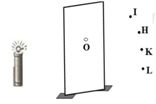 Đặt một bóng đèn pin đang bật sáng trước một tấm bìa có đục một lổ thủng nhỏ O. Phải đặt mắt ở vị trí nào bên kia tấm bìa để có thể nhìn thấy dây tóc bóng đèn?