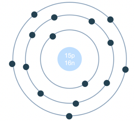 Nguyên tử phosphorus có 15 electron, lớp thứ nhất có 2 electron, lớp thứ hai có 8 electron, lớp thứ ba có 5 electron