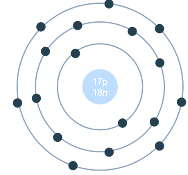 Cho mô hình mô tả nguyên tử chlorine: