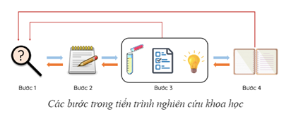 Quan sát và đặt câu hỏi → Hình thành giả thuyết khoa học → Kiểm tra giả thuyết khoa học → Làm báo cáo kết quả nghiên cứu