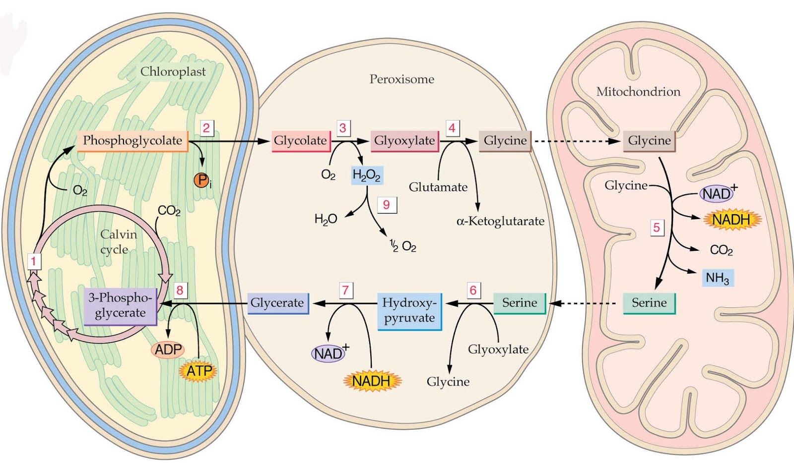 Hô hấp sáng xảy ra với sự tham gia của những bào quan nào dưới đây?