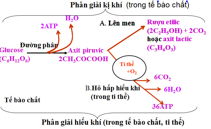 Phân giải kị khí (lên men) từ axit piruvic tạo ra