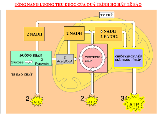 - Hiệu quả năng lượng của quá trình hô hâp hiếu khí khi phân giải 1 phân tử glucôzơ là 34 ATP.