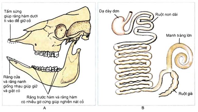Răng cạnh hàm và răng hàm có nhiều giờ cứng giúp nghiền nát cỏ