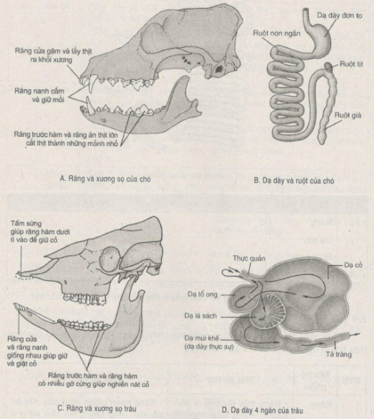 Trong các loại trên, loại nào có dạ dày 4 ngăn?