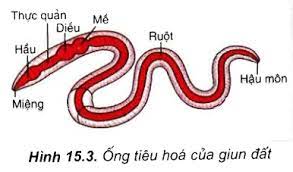 Cơ quan tiêu hóa của giun đất: miệng → hầu → thực quản → diều → mề → ruột → hậu môn