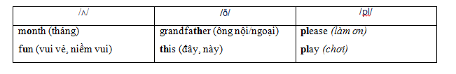 Các con đọc từ lên và chia chúng vào các cột tương ứng với âm mà những từ này có. Có thể sử dụng từ điển để biết cách phát âm của những từ này.