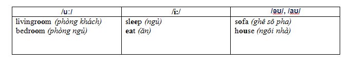 Các con đọc to các từ để chia các từ đã cho vào từng cột tương ứng với âm mà mỗi từ có. Có thể dùng từ điển để biết phiên âm của những từ này.