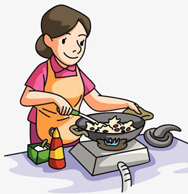 He’s cooking. (Ông ấy đang nấu ăn.)