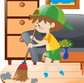 He’s cleaning. (Anh ấy đang quét dọn.)